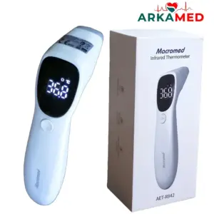 تبسنج لیزری ماکرومد مدل MACROMED AET-R842 یک دستگاه پیشرفته و غیرتماسی است که با استفاده از فناوری مادون قرمز، دمای بدن را از پیشانی با دقت بالا و در کمتر از یک ثانیه اندازهگیری میکند.
