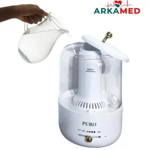 دستگاه بخور سرد پرو (Puro (MaxyMed مدل PU56 با طراحی مدرن و امکانات پیشرفته، رطوبت لازم را در محیط ایجاد کرده و به کاهش خشکی هوا، بهبود سلامت پوست و تنفس راحتتر کمک میکند.