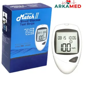 دستگاه تست قند خون مچ Match II با ۵۰ عدد نوار تست محصول شرکت تایوانی OK Biotech است که با استانداردهای بین‌المللی CE0123، ISO13485 و GMP تأیید شده.